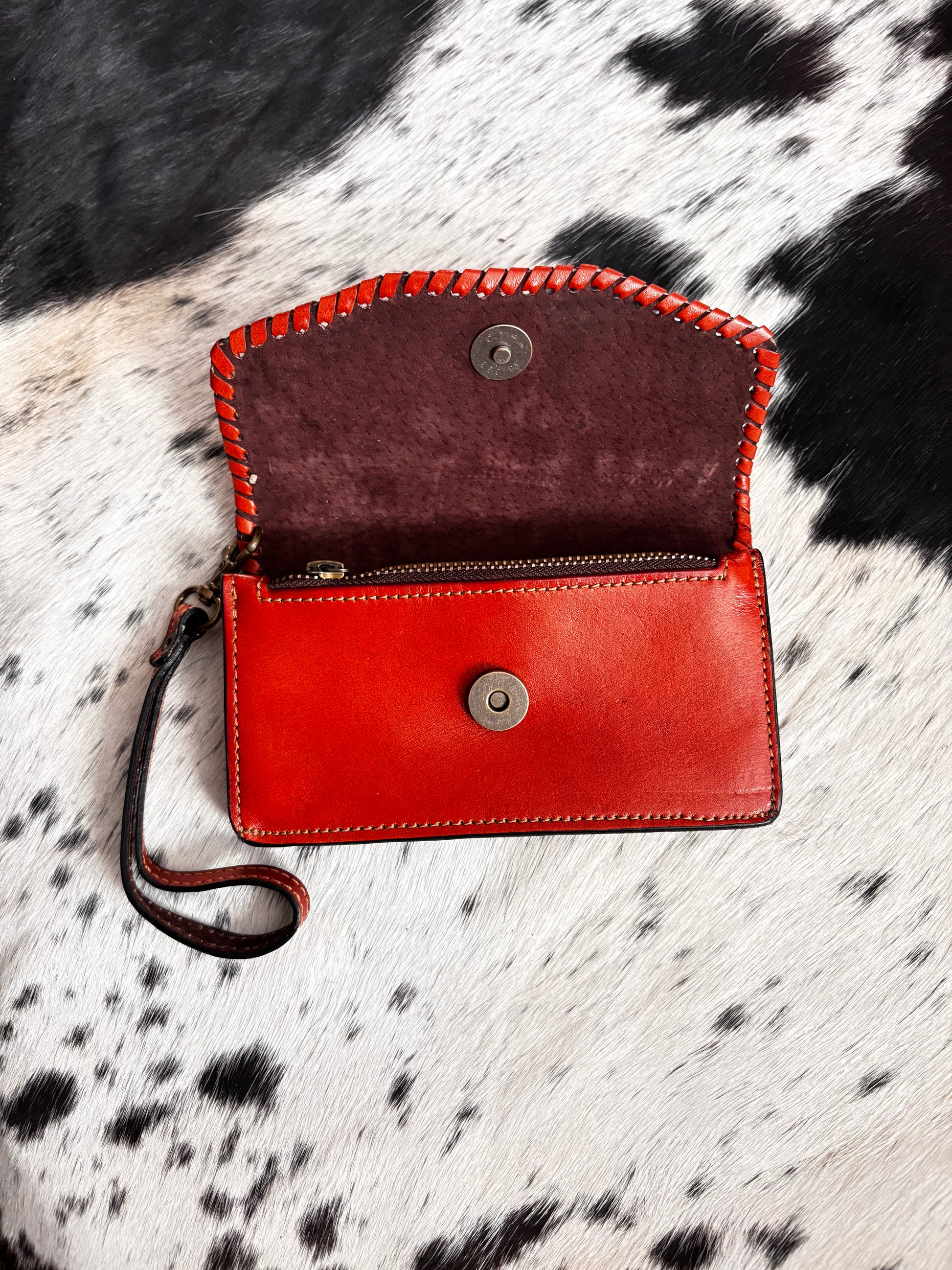 - Floral tooled front flap with classic whipstitch edging
